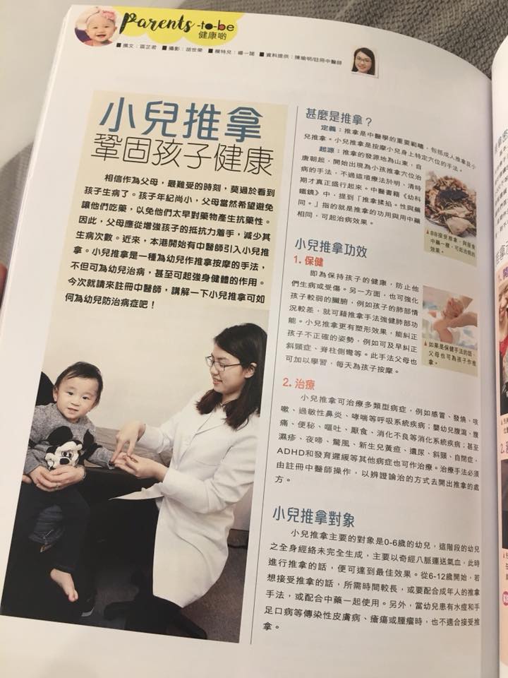 中醫小兒推拿是中醫推拿學及兒科學理論發展起來的一門學科,是自明朝起已有古籍專著記載的推拿治療手法,其手法治療範圍廣泛,療效顯著,是一個安全、可靠、簡便的傳統中醫療法,能有效免除嬰幼兒打針、食藥之苦,並可做到有病可治,無病可防的效果。小兒推拿在內地及新加坡也非常流行,是值得家長信賴的中醫療法。